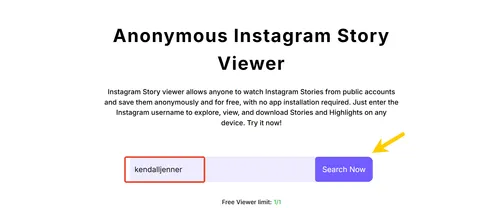 - Click “Search Now” Instantly see that account’s Stories, Highlights, and Posts in a clean, distraction-free layout.