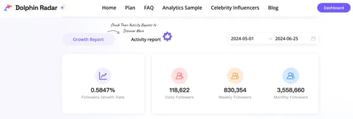 For a comprehensive view, DolphinRadar offers detailed reports similar to those provided for other celebrities, such as Kylie Jenner. These reports give a clear picture of Ronaldo's Instagram behavior and engagement patterns.