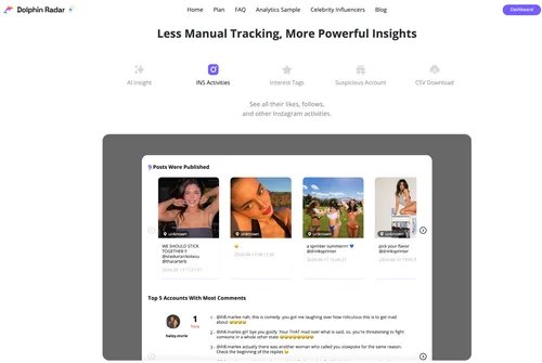 While I can't share John's activity reports due to privacy concerns, DolphinRadar offers sample reports for those interested. These samples demonstrate the trackerâs capabilities and show how it can be used to gain insights into someone's Instagram behavior. If you're feeling like Sherlock Holmes, DolphinRadar is your Watson, providing the evidence you need.