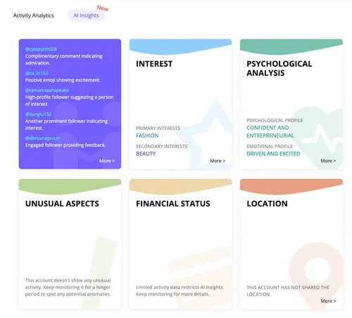 - Psychological Analysis: Gain insights into her emotional and psychological state based on her activity and interactions.