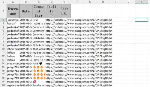 Need to organize comments outside the platform? Dolphin Radar lets you export all comments into an Excel file. Each row is neatly structured with:
