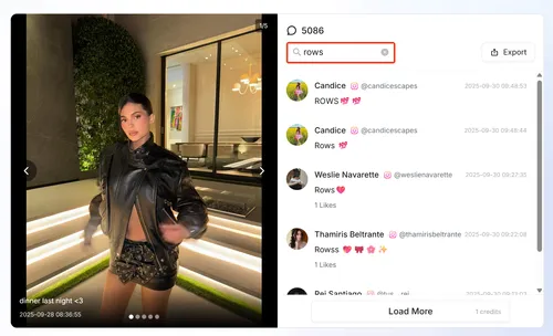 When I searched “rows” with Dolphin Radar, the tool highlighted different comments under a celebrity post. Each had a slightly different tone—one used it with a heart emoji, another with multiple variations—but all carried the same sense of praise. Instead of combing through thousands of replies, the keyword filter surfaced them instantly.