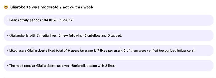 You’ll see a detailed list of all the likes your partner has made on Instagram over the past week. This includes the accounts he liked, the number of likes, and the content of those likes. You can even click on user avatars and liked content to jump directly to the corresponding Instagram page or post. This makes it easier for you to check if his likes raise any red flags.