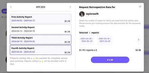 To better track and understand your partner’s Instagram activity, Dolphin Radar offers historical report tracking for up to 36 weeks of data. This allows you to observe trends, changes in behavior, and any unusual activities over an extended period.
