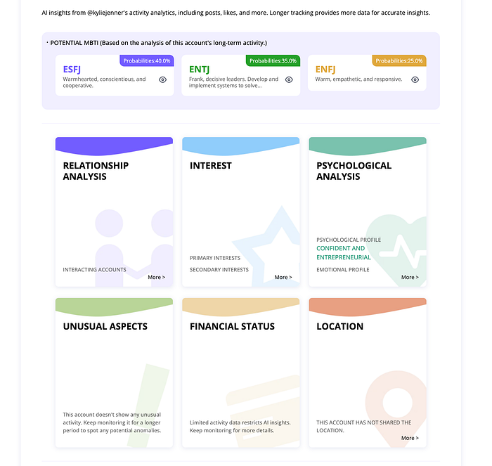 • AI-powered analysis provides insights into behavior, MBTI, relationships, psychology, location, and more.