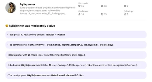 - Active Time: Analyzes when the tracked account is most active on Instagram, enabling users to optimize their posting times to align with when their audience is most likely to be online.