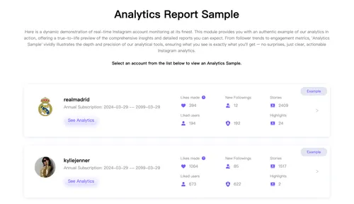 - Receive a detailed, AI-powered report covering stories, posts, comments, likes, follows, and more.