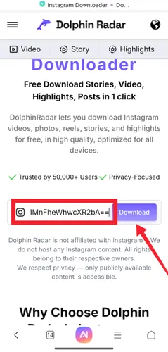 - Enter the Instagram Link: Paste the URL of the Instagram reel or story you want to save.