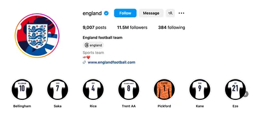 - England (@england): The official account of the England national football team provides match updates, player interviews, and exclusive training ground footage.