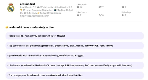 - Get Reports: Receive detailed reports on the activities of these accounts, including new followers, liked posts, and peak activity periods.