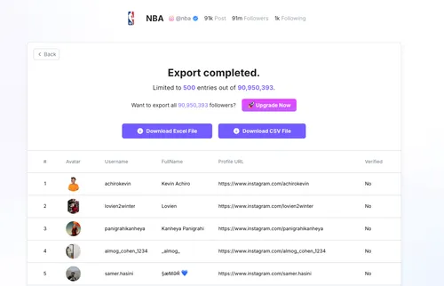 - Audience insights you can actually use: By analyzing followers outside Instagram, you can segment by verification status, profile completeness, or other attributes that help shape your content and outreach strategies.