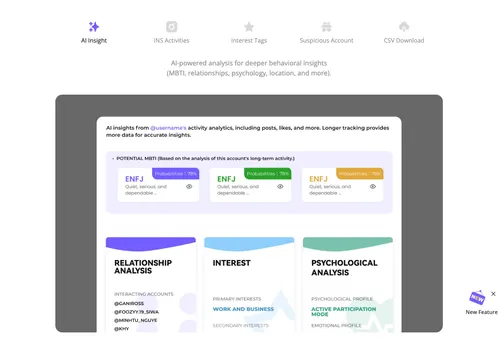 - Interest Tags: AI-driven insights highlight the main interests of the target account based on their activity. This is displayed in a tag cloud format for easy understanding.